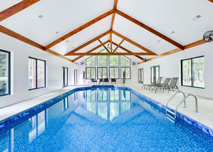 Luxury Villa With Year Round Heated Pool, Sauna, Spa & Fire Pit - Newly Redone East Stroudsburg est situé à moins de 3 km de la Smithfield Beach National Recreation Area et propose un centre avec piscine intérieure, ainsi qu'une clôture de piscine pour vous détendre. Bénéficiant d'un accès à une terrasse, cette villa de 7 chambres vous invite à visiter le Pocono Indian Museum, situé à environ 14 minutes à pied.